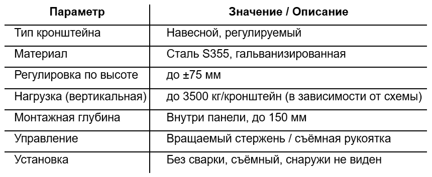 HOOK-BRACKET — is a removable mounting bracket with a hook-shaped lock and built-in vertical adjustment mechanism. Designed for installing facade panels PanelKIT, PanelCORE and other modules KARKASYS in buildings with reinforced concrete frame.