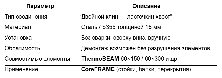 Key mounting element of the system KARKASYS. Provides fast and reliable connection of thermal profiles ThermoBEAM in the frame without using welding, bolts or wet processes.