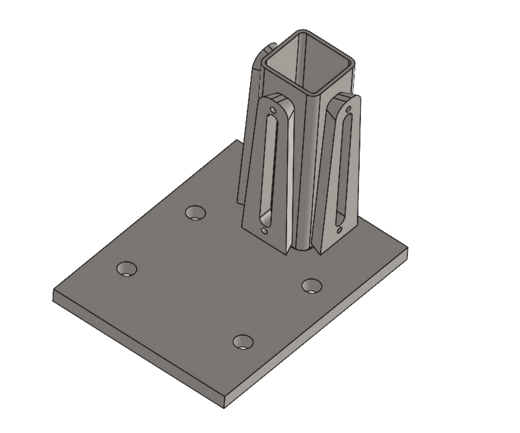 • Into the inner tube in the upper part is welded mounting plate (thickness 10 mm, width 75 mm, length 150 mm] with two holes ⌀12 mm, offset 35 mm from edges;