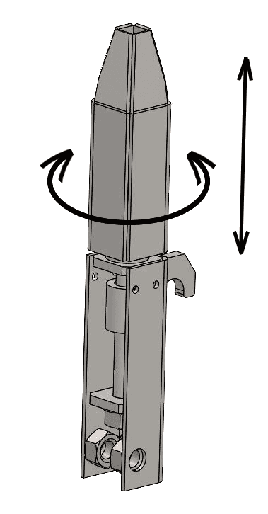 • The hook is connected to a movable vertical screw transmission, allowing precise height adjustment of the panel;