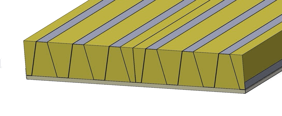 • basalt boards with a density of 125 kg/m³ are installed in the lower and upper waves of the trapezoidal profile.