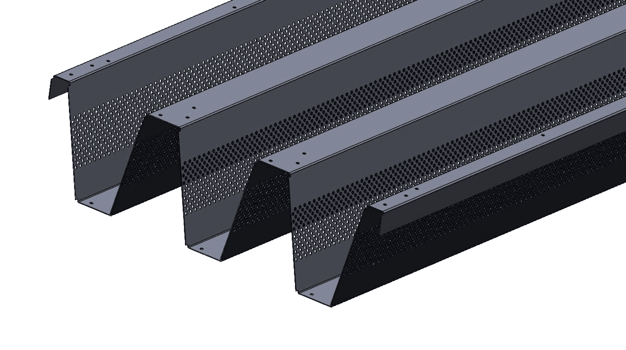 • The load-bearing part is made of trapezoidal metal profiles made of S355 steel with perforation to improve thermal-acoustic insulation characteristics.
