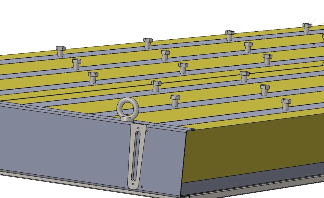 • Formwork required for pouring is attached to the frame through standard nuts at the corners, provided for eyebolts, which eliminates the use of individual forms.