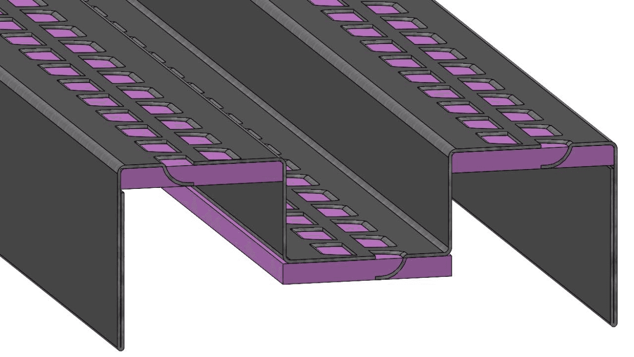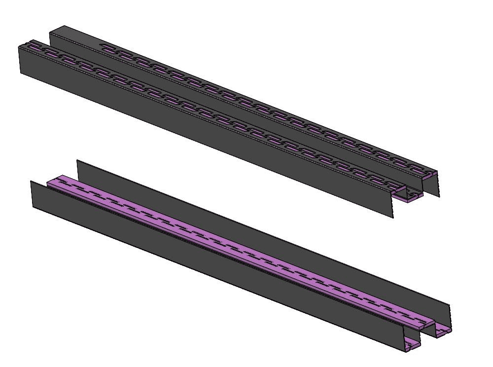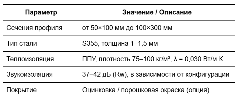 ThermoPROFILE — is an innovative metal profile developed to increase energy efficiency and rigidity of light steel frame (LSFS] structures. Unlike traditional cold-formed profiles, ThermoPROFILE is equipped with perforated side walls (in a staggered pattern, "louver" type], the internal cavity of which is filled with rigid polyurethane (PUR]. This structural solution increases the effective section modulus while maintaining lightness and minimal steel thickness.